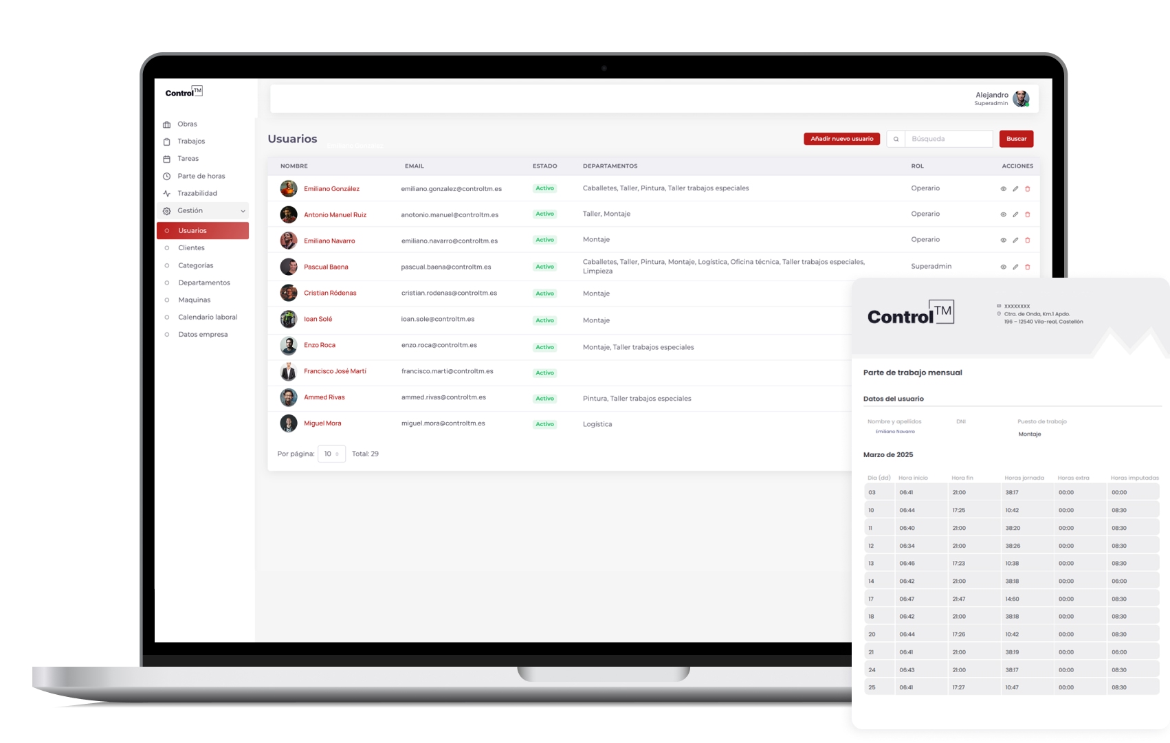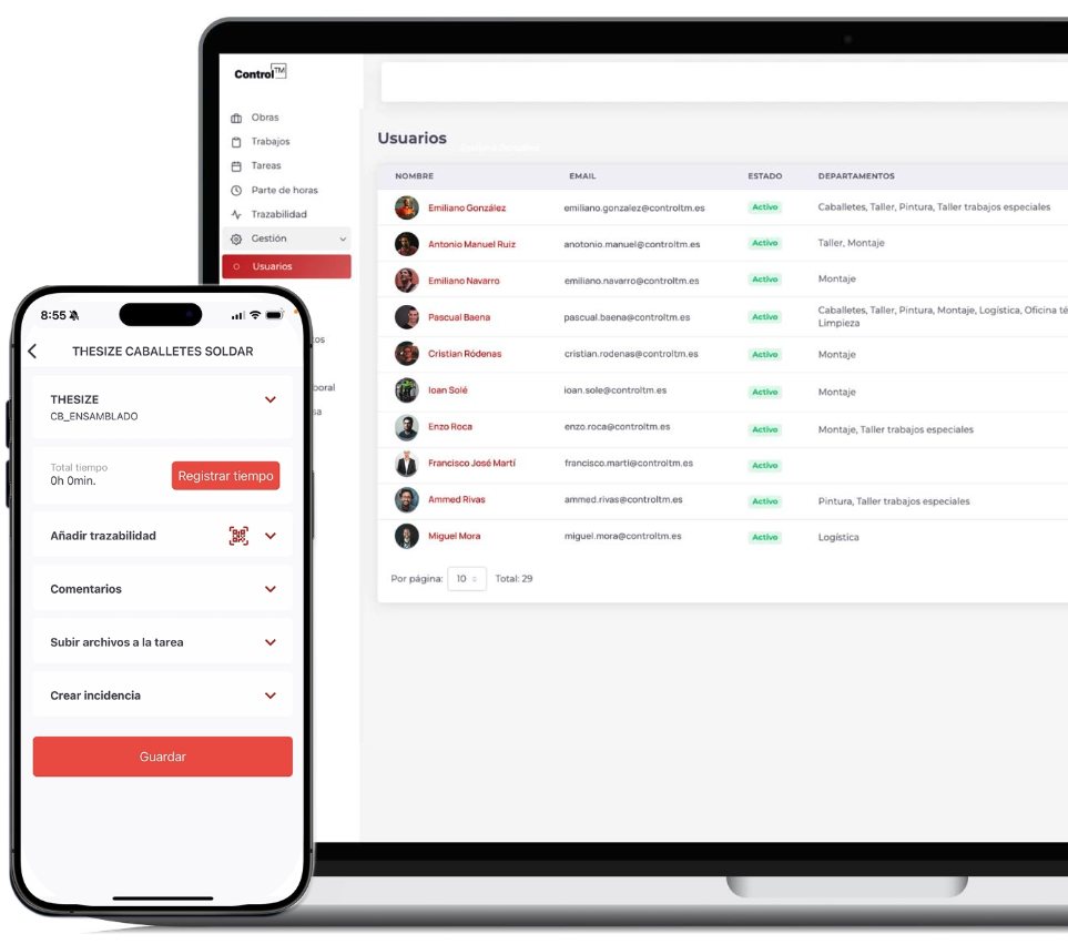 Organiza el trabajo diario, asigna tareas y controla las horas efectivas de cada operario. Más eficiencia, menos descoordinación.