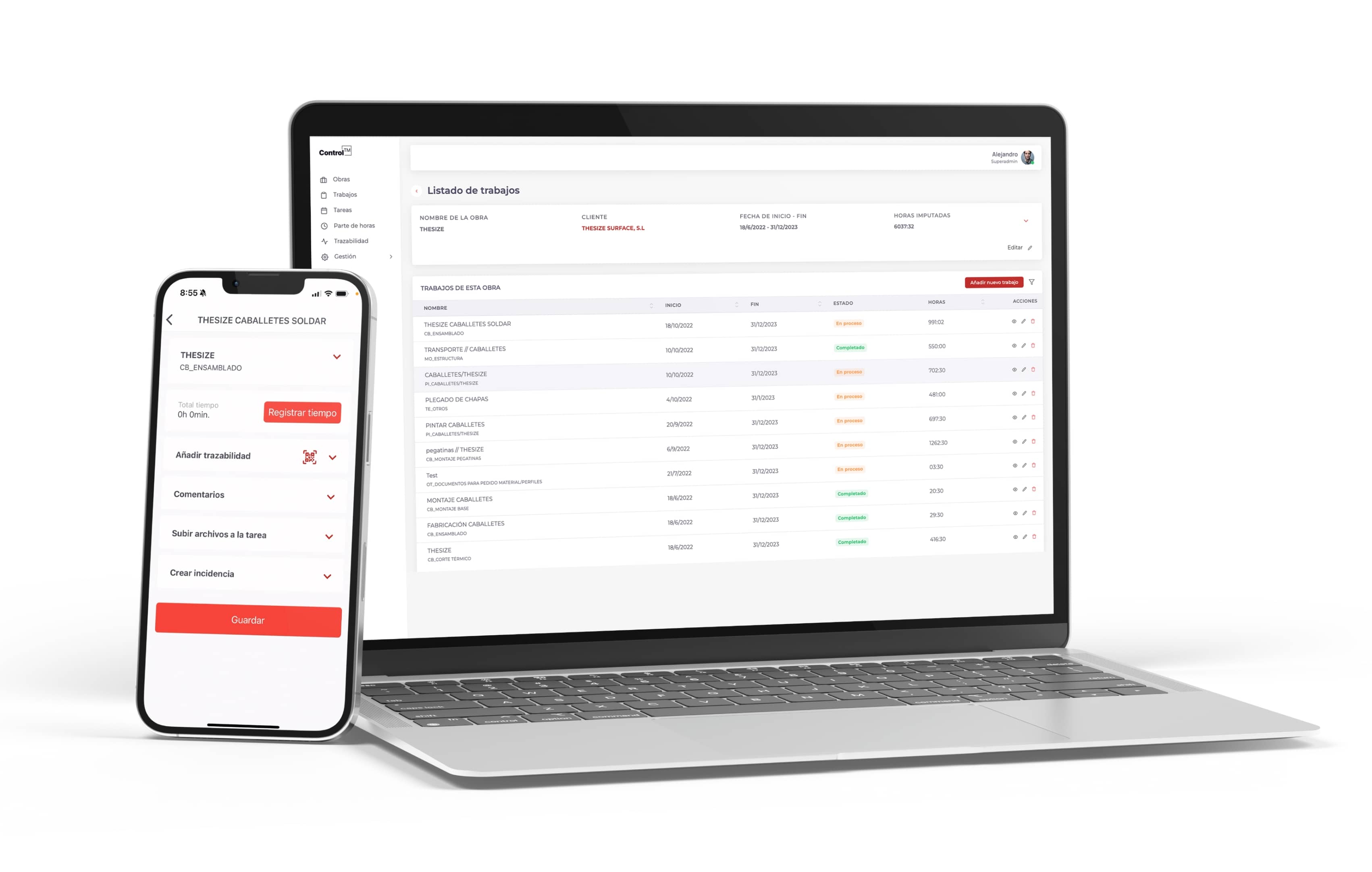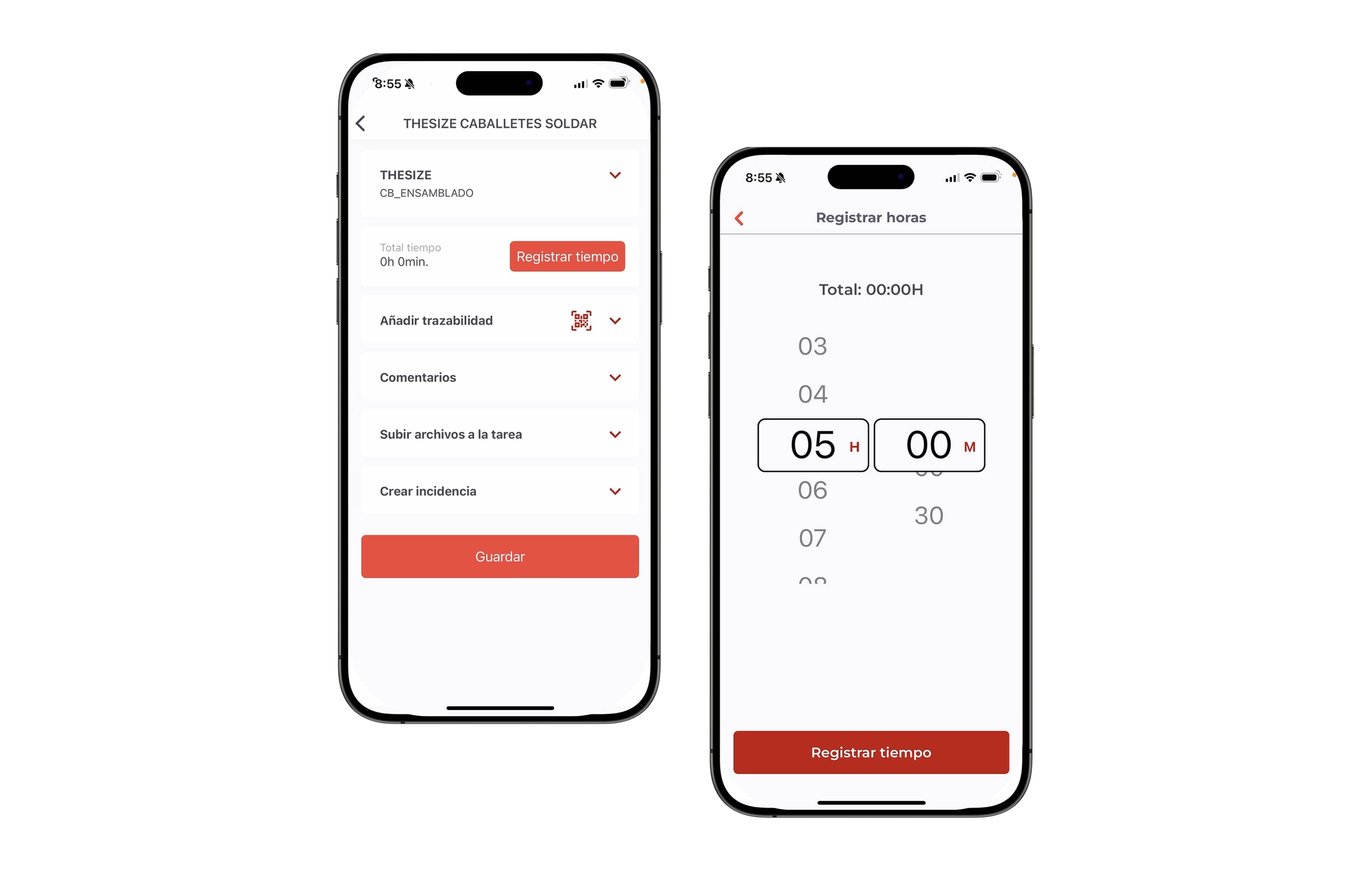 Incluye registro de entrada y salida desde la misma plataforma, permitiendo una visión unificada del tiempo trabajado, tanto en jornadas como en tareas específicas.