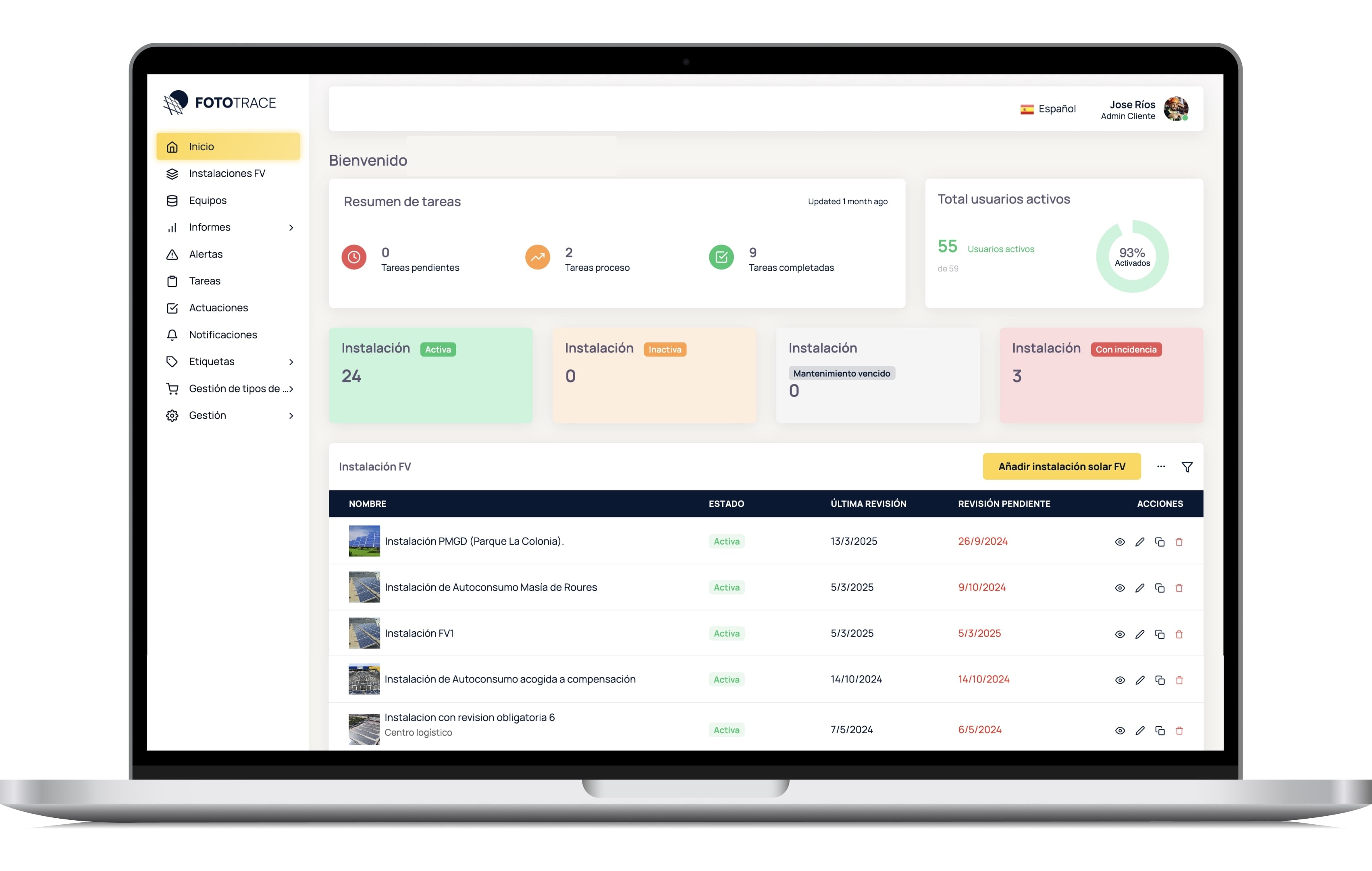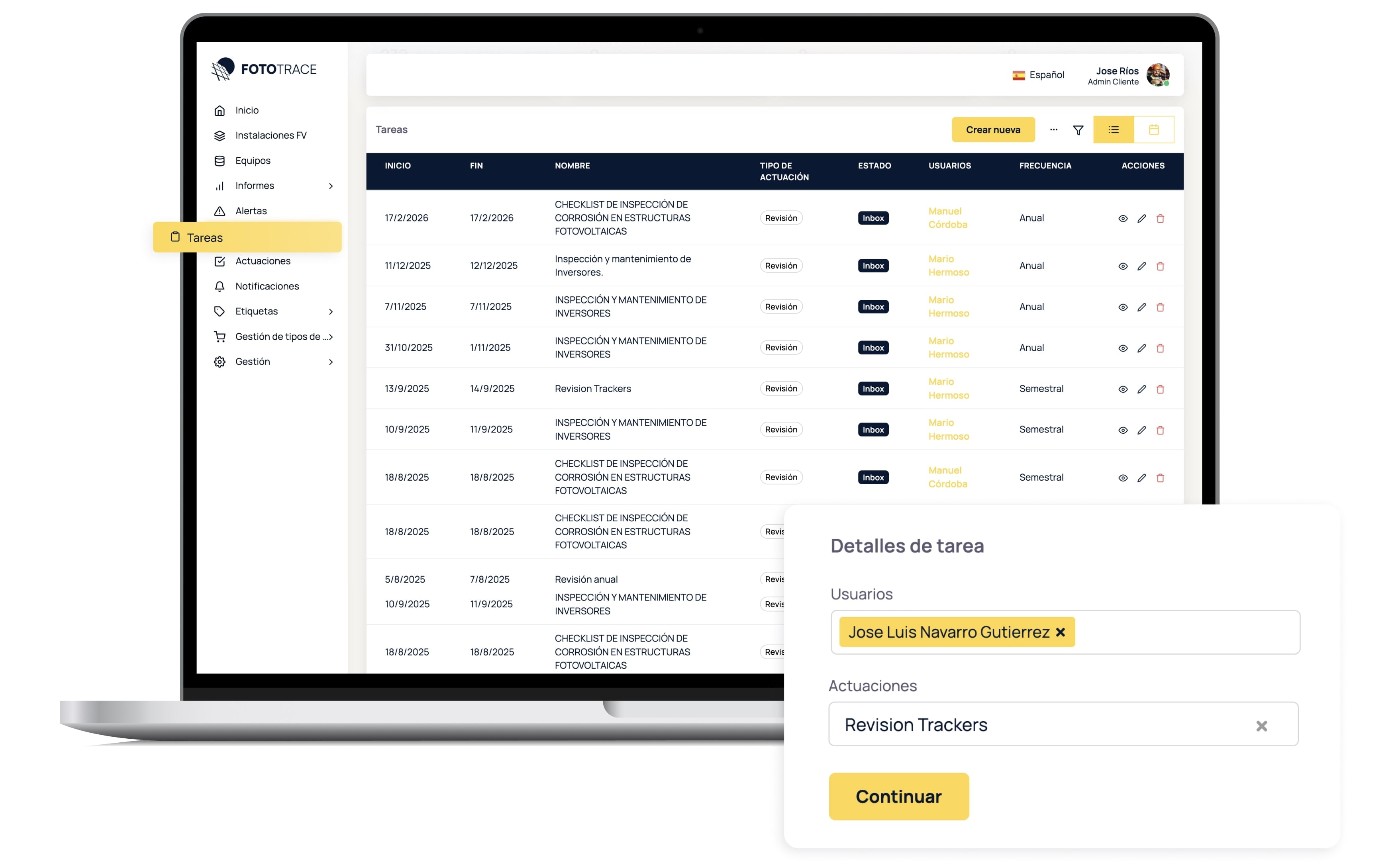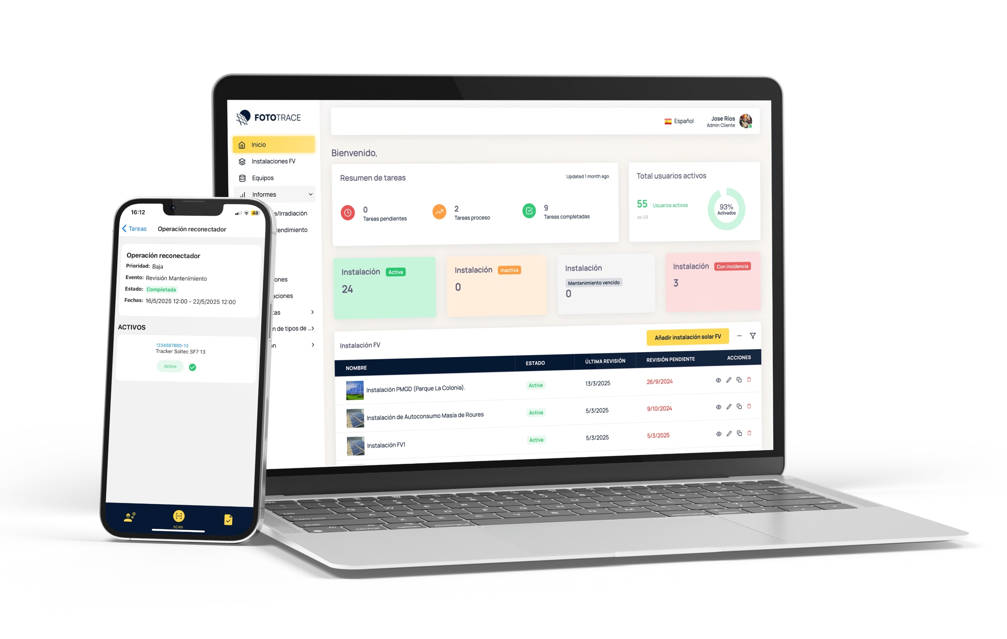 Olvídate de las hojas de Excel, los partes en papel y la descoordinación. Con FotoTrace, tu equipo trabaja conectado, las tareas se automatizan y los mantenimientos se ejecutan con trazabilidad total.