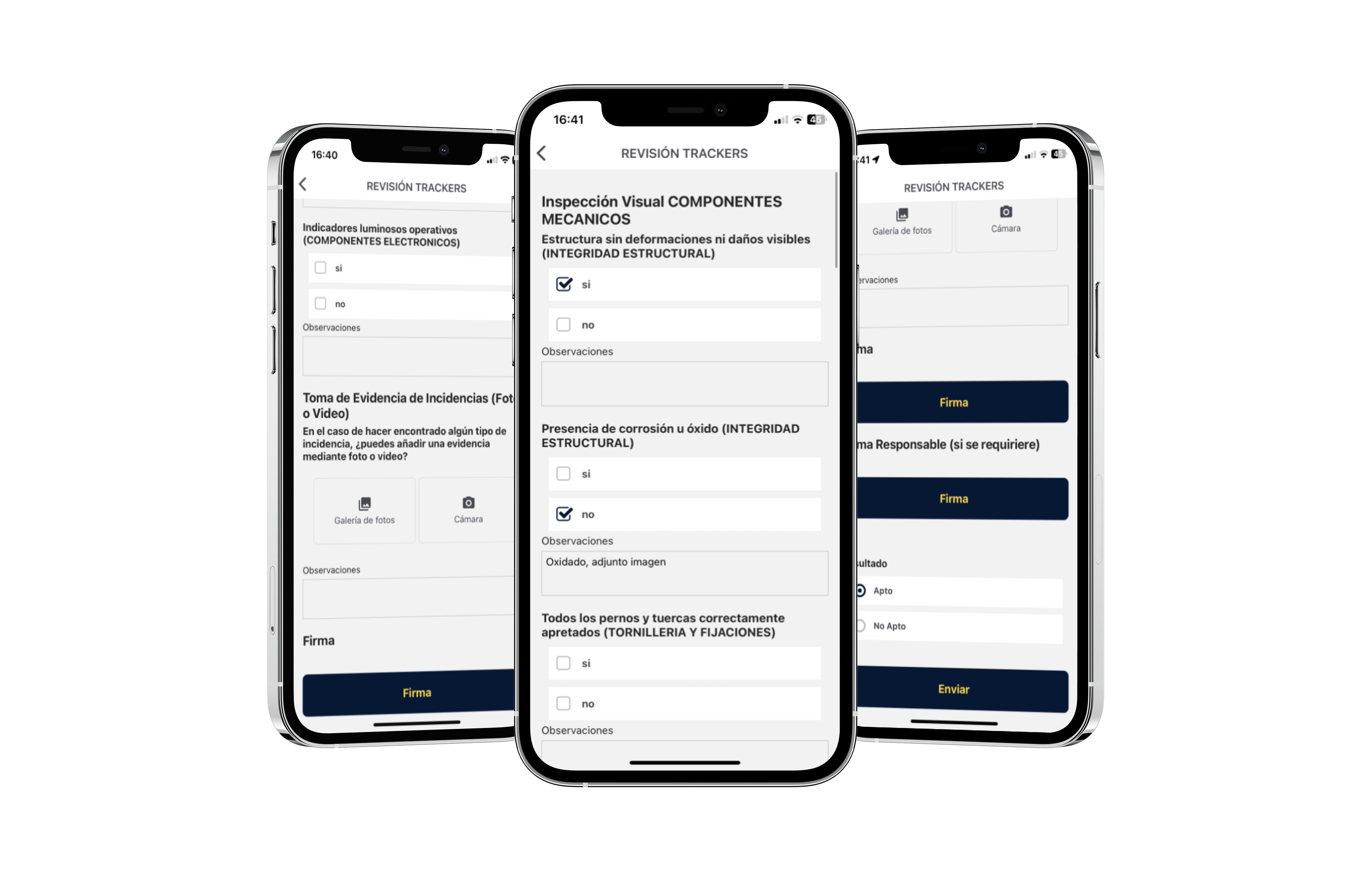 Registro de información y generación de reportes de mantenimiento de forma automatizada en tiempo real. Se permite firma electrónica con validez legal como respaldo de nuestras actuaciones.