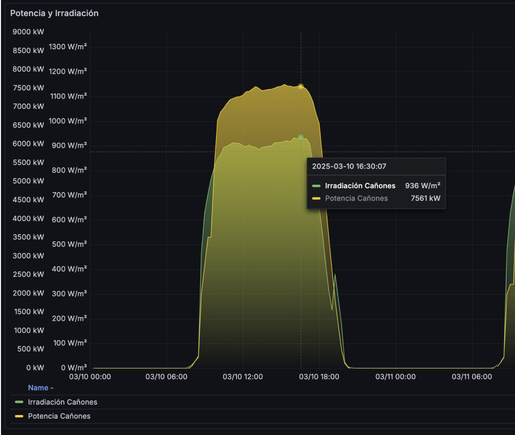 - Visibilidad unificada de la flota: producción, irradiación y rendimiento por inversor, en un único panel.